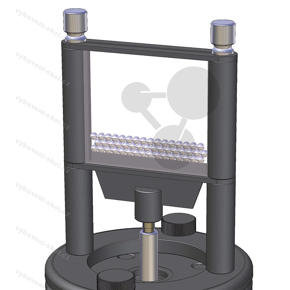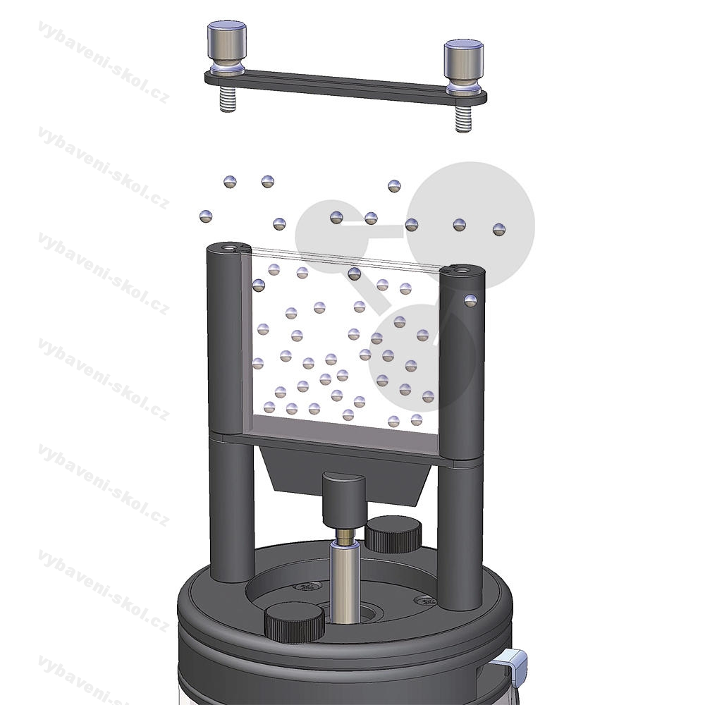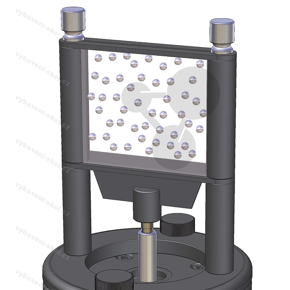 48 ocelových kuliček reprezentuje molekuly plynu v uzavřené nádobě. Teplo je simulováno vibracemi generátoru kmitů. Díky přivedené energii je vyvíjen tlak na desku pístu, která je součástí dodávky. Podle frekvence lze určit pevné, kapalné a plynné skupenství látky. Součástí dodávky je podstavec, pomocí kterého lze generátor kmitů položit na zpětný projektor, a tím je ve třídě umožněno působivé promítání jevů.