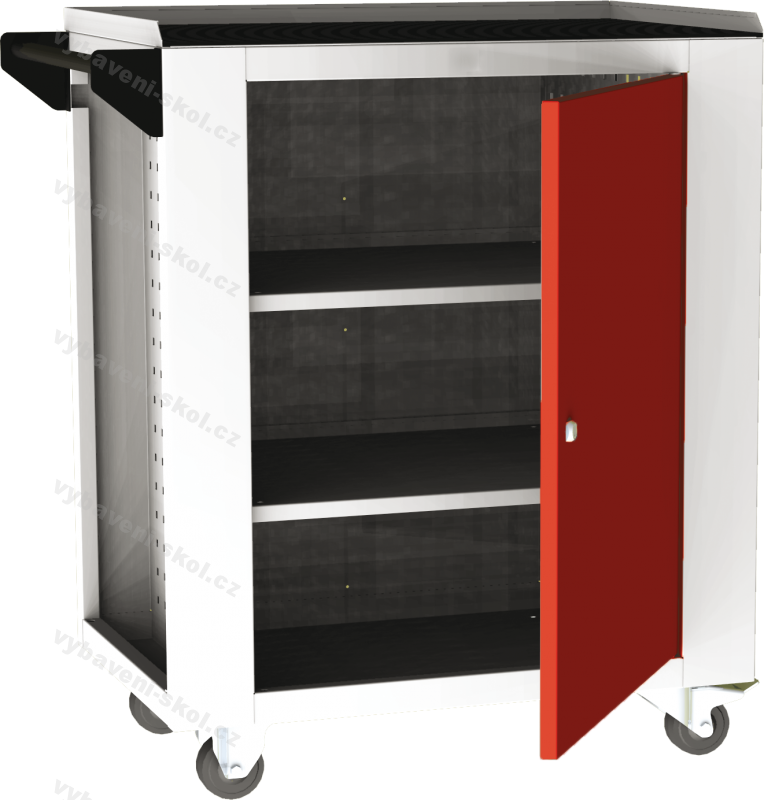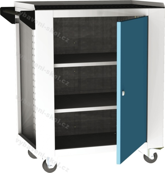 Modulární servisní vozík udržuje pořádek v uloženém nářadí a umožňuje jejich snadné přemísťování. Je vyrobený z pevné plechové samonosné konstrukce šedé barvy RAL, kterou doplňují 2 police kryté dvířky s možností výběru barvy RAL a odkládací vrchní plocha zakončená rámem s protiskluzovou pryží. Snadnou mobilitu montážního vozíku zajišťují pojezdová kolečka vybavená brzdou a madlo. Celková nosnost korpusu je 150 kg, nosnost zásuvek je 30 kg. Vozík lze vybavit dalším příslušenstvím např. držák nářadí, zásuvka, police.