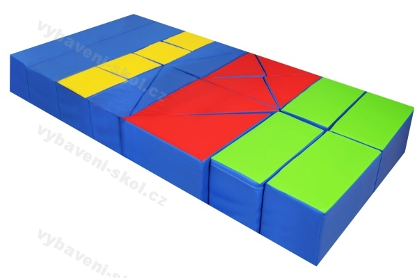 Geometrická stavebnice. Pomůcka při výuce matematiky. Lze využít jako matraci. Celkový rozměr stavebnice: 200 x 100 x 25 cm.