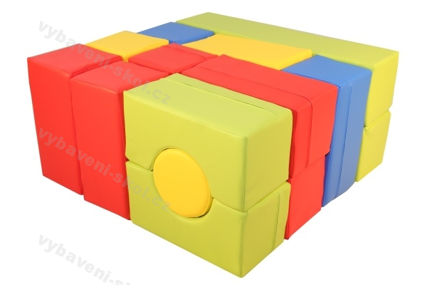 Výrobek je z pevného molitanu a kvalitní koženky. Je určen pro hru, cvičení i sezení. Povrch je omyvatelný. Nové zářivé barvy.Celou stavebnici jednoduše složíte do kvádru. Sada 15 dílů.