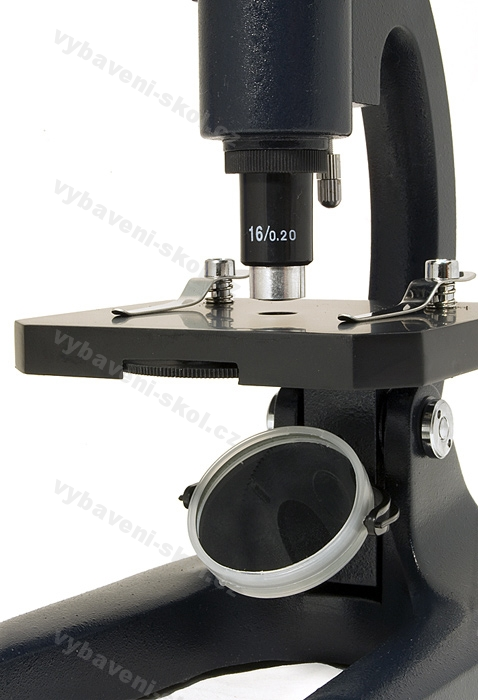 Zvětšení 200x. Umožňuje pozorování transparentních vzorků v jasném zorném poli. Plankonkávní zrcátko o průměru 40 mm. Achromatický objektiv o zvětšení 16x. Pracovní stolek o rozměrech 100x90 mm.