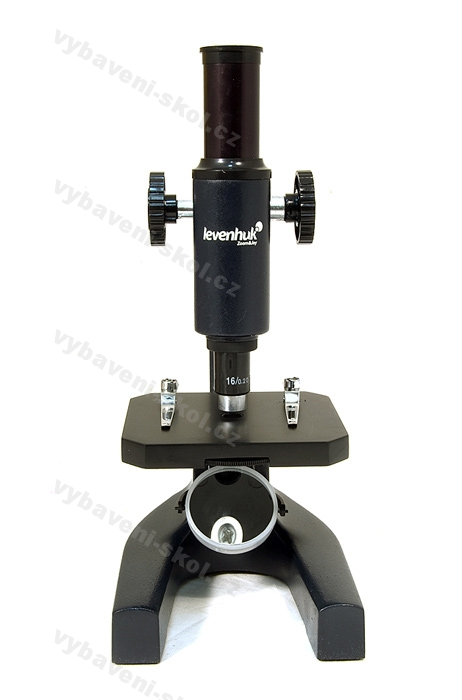 Tento monokulární mikroskop má jediný achromatický objektiv o zvětšení 16x, který nabízí jasný obraz bez jakékoli chromatické nebo sférické aberace. Hlavice mikroskopu je umístěna přímo nad pracovním stolkem, ale pro pohodlné pozorování můžete pomocí ramene mikroskopu hlavici i pracovní stolek naklonit do požadovaného úhlu.