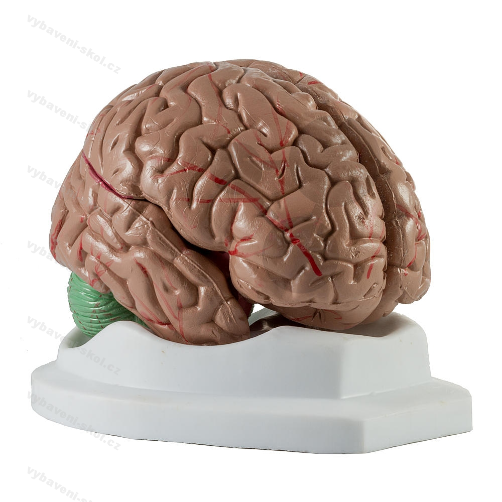 V kvalitě LabGear. Všechny struktury mozku v mediánním řezu jsou ručně malované. Pravou polovinu lze rozložit na následující díly: čelní a temenní lalok, mozkový kmen se spánkovým a týlním lalokem, malý mozek. 18 x 12 x 10 cm. Pro 2. stupeň ZŠ.