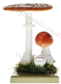 Vysoce realistický model - špičková kvalita SOMSO. Speciální Somso-plast, precizní rukodělná výroba. Houby umístěny na podstavci, naaranžované v mechu. Skutečná velikost.