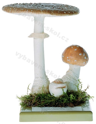 Vysoce realistický model - špičková kvalita SOMSO. Speciální Somso-plast, precizní rukodělná výroba. Houby umístěny na podstavci, naaranžované v mechu. Skutečná velikost.