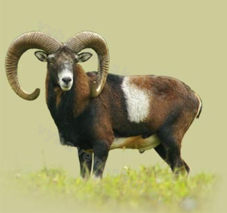Reálný dermoplastický preparát muflona v reálné pozici.