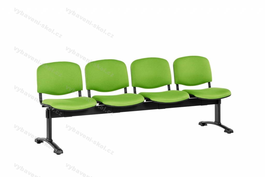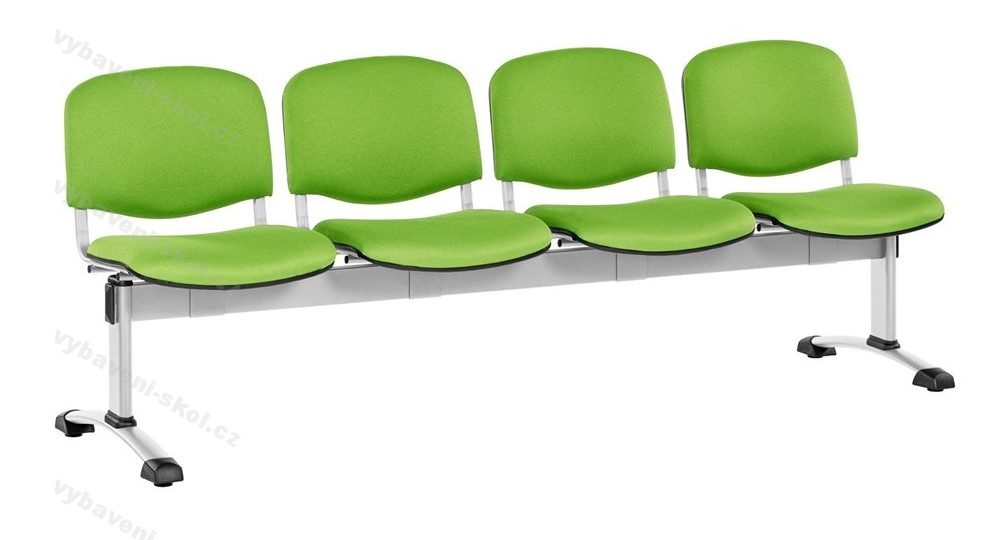 Čtyřmístná čalouněná lavice s výběrem potahových látek, černý nebo šedý ocelový rám, kluzáky nastavitelné výškově, sedadlo lze nahradit odkládacím překližkovým stolkem - dezén lakovaný přírodní buk: cena lavice zůstává nezměněna, nosnost 120 kg/1 místo, záruka 24 měsíců.