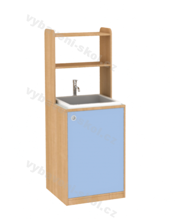 Nepostradatelná součást studentského pracovního vybavení odborné vzdělávací učebny fyziky, chemie. Mycí panel je určený pro práci s vodou, je vybavený kvalitním keramickým dřezem s vodovodní baterií a odtokovou trubkou odolnou vůči chemikáliím. Dřez je zasazený do nízké skříňky vyrobené z laminované dřevotřískové desky LTD o síle 18 mm (k výběru barevné varianty). Vrchní deska okolo dřezu je zhotovená z odolné umakartové desky (barvy v nabídce níže). Nejvíce namáhané hrany jsou opatřené ochranným systémem ABS v tloušťce 2 mm. Spodní část mycího panelu tvoří úložný policový systém krytý dvířky s možností volby barvy. Dveře jsou opatřené kovovými kruhovými úchyty (v nabídce další druhy), je možné je vybavit zámkem. Vnitřní stavitelná police s nosností 30 kg. Skříň je umístěná na 5 cm vysokém soklu.