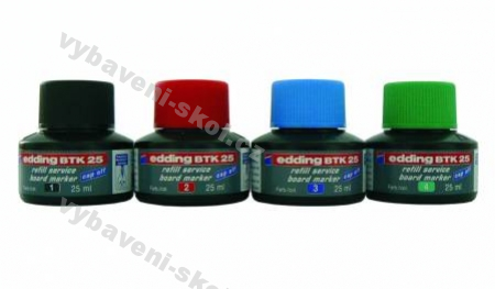 Inkoust černý BTK 25 do popisovače Edding na bílé tabule. Pro rozšroubovatelné i nerozšroubovatelné fixy. 25 ml.