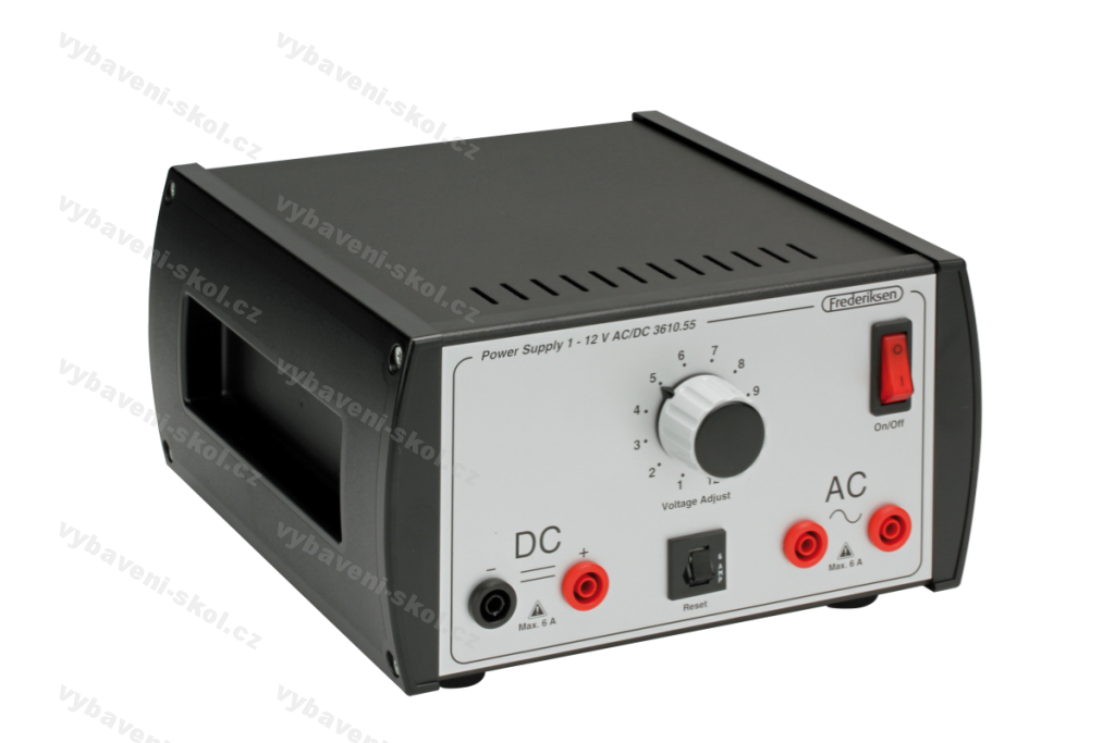 Robustní nestabilizovaný žákovský zdroj. Automatická tepelná ochrana proti přetížení. DC, AC 1-12 V.