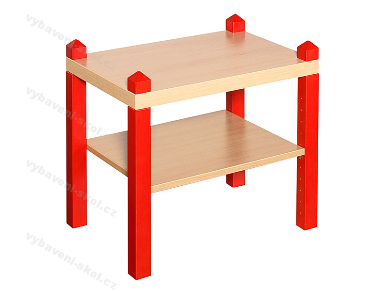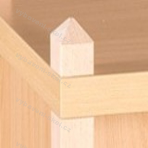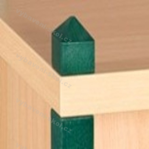 Nízkou nástavbovou otevřenou skříňku lze ustavit na jiné nábytkové skříňky z programu Miki nebo ji využívat samostatně v prostoru. Jednoduchou skříňku tvoří vrchní deska a 1 police z oboustranně laminované dřevotřísky (18 a 38 mm), chráněné hranou ABS a ozdobné nosné hranoly z masivního buku (barva dle vzorníku).