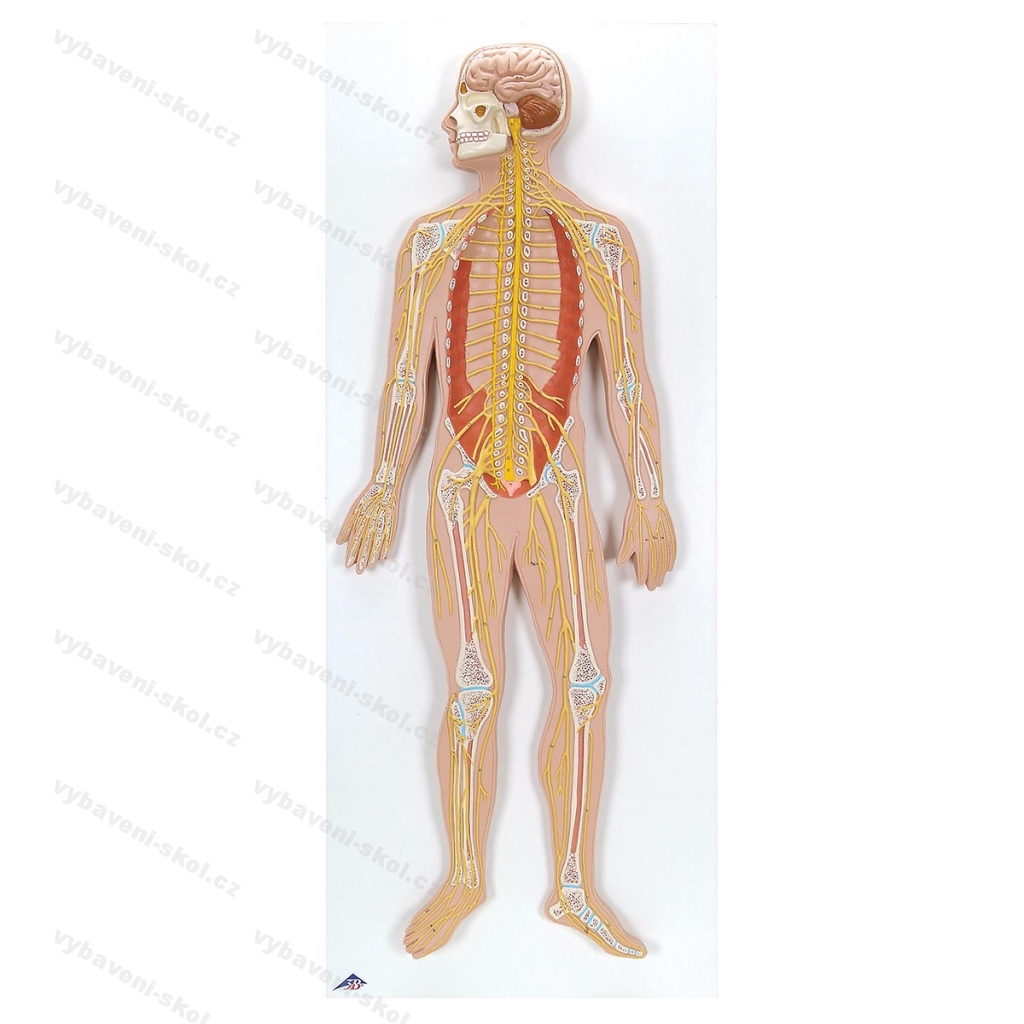Reliéfní plastový model v poloviční velikosti. Schématické znázornění centrálního i periferního nervového systému. Jedinečný model pro studium lidského nervového systému. Na podkladové desce. Špičková kvalita 3B Scientific. Velikost 80 x 33 x 6 cm, hmotnost 3,1 kg.