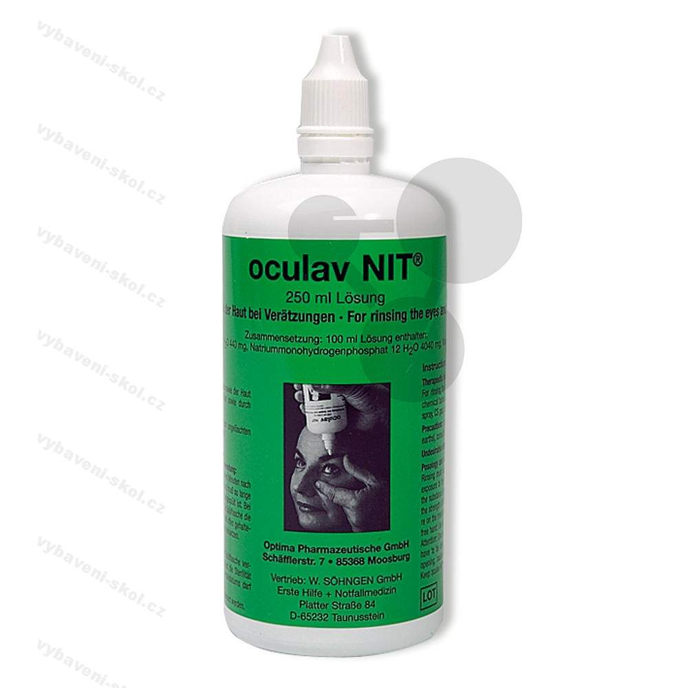 Okamžitý oční výplach oculav NIT® - sterilní roztok. 250 ml sterilního roztoku připraveného k použití pro okamžitý výplach očí, spojivkového vaku a postižené kůže v místě nehody. Pufrový roztok váže a neutralizuje, zejména také po poleptání kyselinami nebo louhy nebo zasažení pepřovým sprejem, bojovým nebo slzným plynem. Cizí tělesa můžete šetrně vypláchnout dávkovaným množstvím kapaliny. Jednoduchá manipulace bez nutnosti instruktáže. Odolnost vůči teplotám, bez rizika kontaminace, bez údržby, bez výměny vody. Lékařský produkt, dle zákona o lékařských produktech s označením CE v souladu s normou DIN EN 15154-4, je připraven k bezprostřednímu použití jednou rukou. Hladká tryska bez otřepů, při vyprazdňování držte trysku směrem dolů, použijte k vyplavení cizích těles, hermetický bezpečnostní uzávěr, trvanlivost 3 roky.
