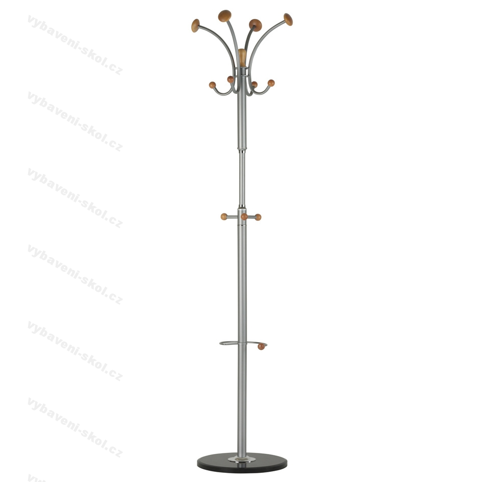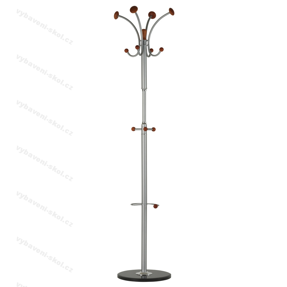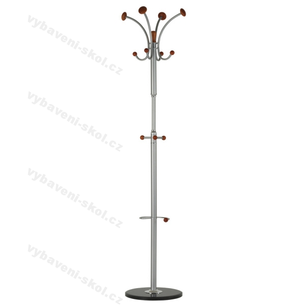 Praktická součást všech vstupních prostor, kanceláří, domácností. Odkládací věšák Britt je oblíbeným designovým doplňkem. Kombinuje kovové a dřevěné části, spodní část tvoří pevná mramorová deska, která zajišťuje věšáku stabilitu. Kovové části mají odstín hliník RAL 9006. Dřevěné ozdobné části lze vybírat z několika moření (buk, calvados, třešeň). Hmotnost věšáku včetně obalu 9,9 kg. Rozměry 42x189x42 cm (ŠxVxH).