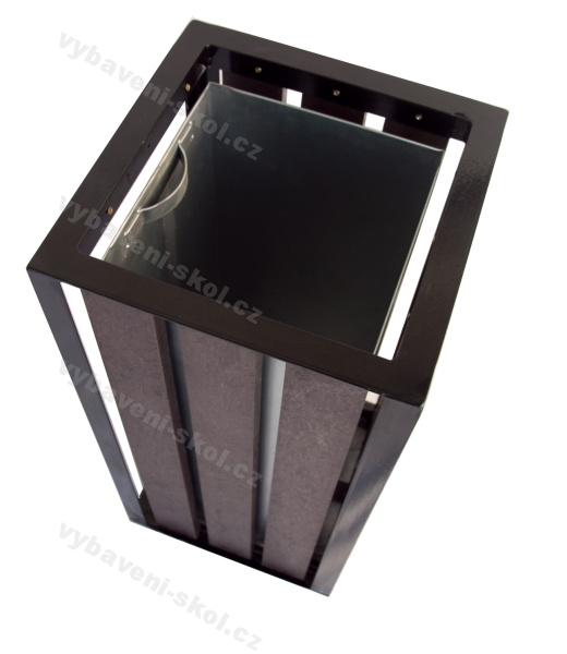 Venkovní odpadkový koš s kovovou konstrukcí, který je doplněn o bezúdržbové plastové recykláty je vhodný do všech venkovních prostorů. Povrchová úprava kovu žárově zinkována nebo ošetřena vypalovanou barvou v různých provedeních RAL. Kotvení koše šrouby nebo betonováním.