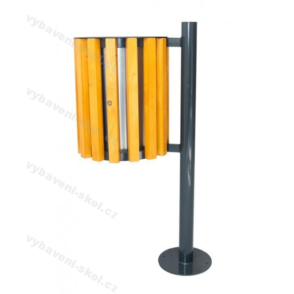 Odpadkový koš s dřevěným obložením do veřejných prostorů! Designový odpadkový koš vhodný do centra města, na zastávku, ke vchodům budov nebo k dětskému hřišti. Venkovní koš s pozinkovanou nádobou. Ocelová kostra je ošetřena práškovou vypalovací barvou s výběrem RAL provedení. Obložení koše hoblovanými smrkovými latěmi ošetřený třikrát lazurou ve volitelném dezénu s UV ochranou. Koš lze kotvit šrouby nebo variantou pro betonáž.