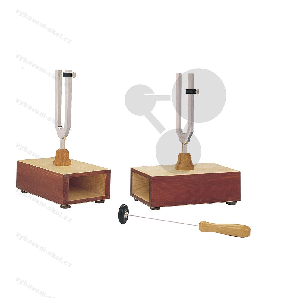 Na dřevěných rezonančních skříňkách. Pro demonstraci rezonance a disonance. K rezonanci dochází i při vzdálenosti několik metrů.