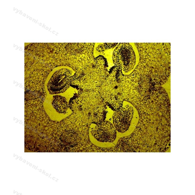 10 preparátů KONUS. Např. příčný řez článkem tasemnice, vajíčko tasemnice, příčný řez játry králíka nemocného kokcidiozou, příčný řez škrkavky člověka a prasete. V krabičce, náhradní krycí a podložní skla.