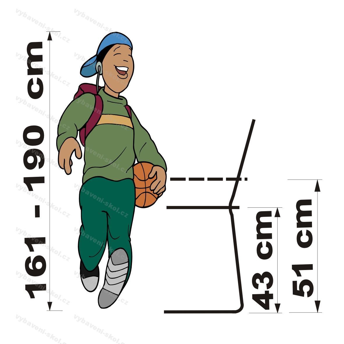 PEGAS výškově stavitelná stohovatelná židle, kovová, stavitelná konstrukce, sedáka opěrák z lakované bukové překlížky s prolisem.