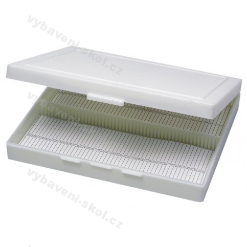 Plastová krabice na preparáty. Pro 100 ks preparátů.