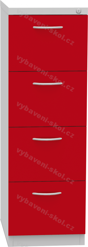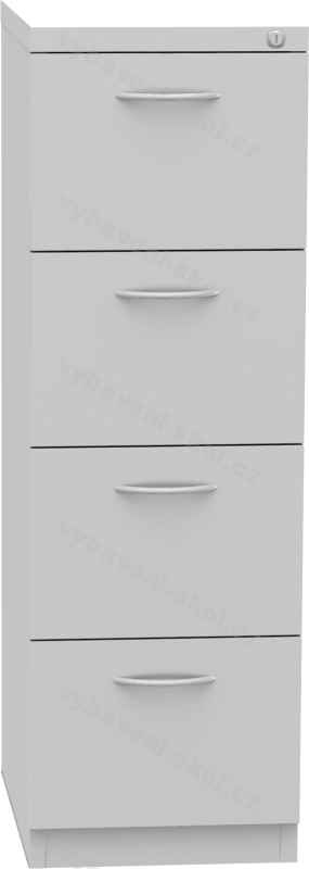 Plechová registrační skříň slouží především k ukládání dokumentů formátu A4, pořadačů, archiválií, map a nejrůznějších médií. Standardní povrchová úprava je práškovou barvou v barvě RAL 7035 (šedá ) a čela zásuvek lze zvolit v barvách RAL dle nabídky. U některých produktů nabízíme čela zásuvek a povrch dveří z lamina. Základním vybavením registrační skříně jsou: čela zásuvek s madly, cylindrickým zámkem, blokací proti vysunutí více zásuvek najednou a zavěšením zásuvek na kuličkovém, nebo kolečkovém výsuvu (dle výběru zákazníka). Nosnost jedné zásuvky je max. 40 kg.