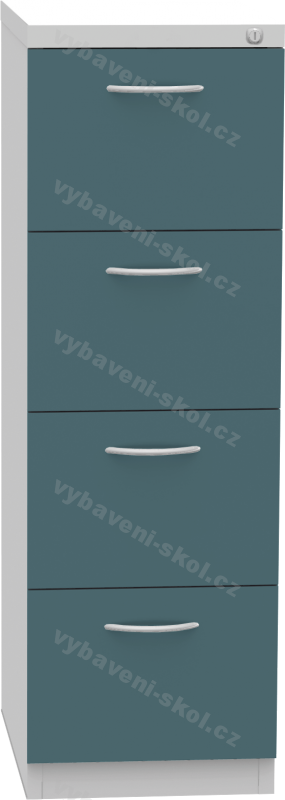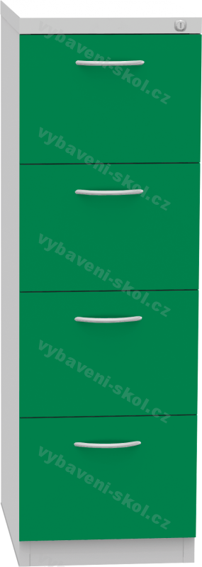 Plechová registrační skříň, čtyřdílná. Rozměr: 40,4 x 125 x 60 cm (Š x V x H) pro formát A4.