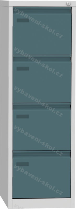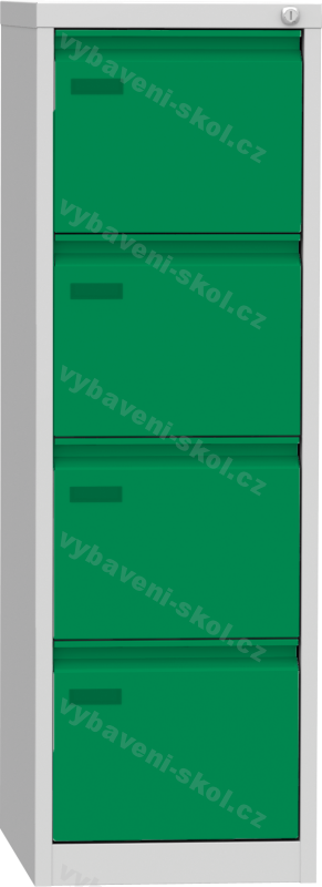 Plechová registrační skříň, čtyřdílná. Rozměr: 40,4 x 125 x 60 cm (Š x V x H) pro formát A4.