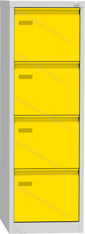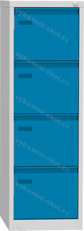 Plechová registrační skříň slouží především k ukládání dokumentů formátu A4, pořadačů, archiválií, map a nejrůznějších médií. Standardní povrchová úprava je práškovou barvou kostra v barvě RAL 7035 (šedá) a čela zásuvek s možností zvolit barvu RAL. U některých produktů nabízíme čela zásuvek a povrch dveří z lamina. Základním vybavením registrační skříně jsou profilovaná čela zásuvek, plastové štítky pro vložení jmenovek, cylindrickým zámkem, blokací proti vysunutí více zásuvek najednou a zavěšením zásuvek na kuličkovém, nebo kolečkovém výsuvu (dle výběru zákazníka). Nosnost jedné zásuvky je max. 40 kg.