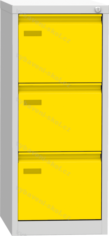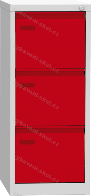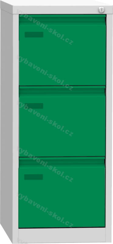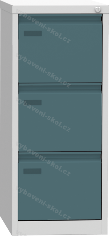 Plechová registrační skříň, trojdílná. Rozměry: 40,4 x 96,2 x 60 cm (Š x V x H) pro formát A4.