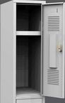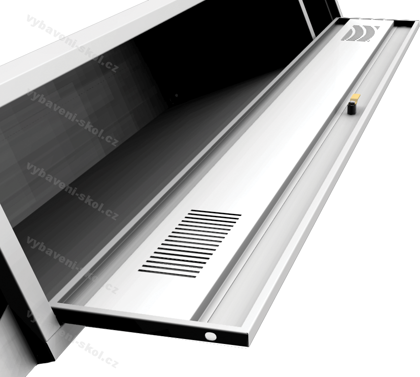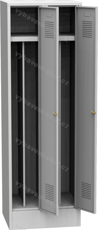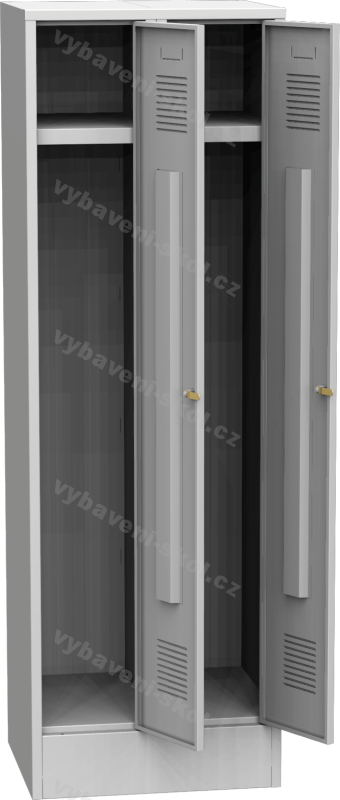 Povrch skříně je ošetřen práškovou povrchovou úpravou v barvě RAL 7035, ta předurčuje šatní skříni dlouhou životnost, snadno se čistí a udržuje. Šatní oddělení je standardně vybaveno policí a tyčí na šaty se 3 plastovými háčky. Svařovaný korpus z ocelového plechu tl. 0,7 mm. Dveře s možností volby barvy RAL jsou standardně vybaveny výztuhou pro zvýšení odolnosti, větracími žaluziemi pro účinné odvětrání a prolisem. Dveře jsou zavěšeny na vnějších pantech. Šatní skříň je standardně vybavena cylindrickým zámkem se dvěma klíči. Zamykání dveří je jednobodové, umístěné uprostřed dveří. Další výbavu můžete zvolit dle nabídky.