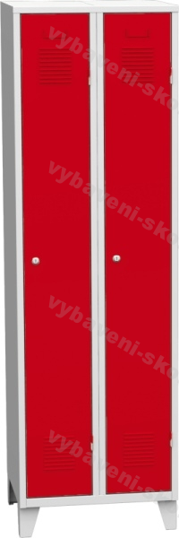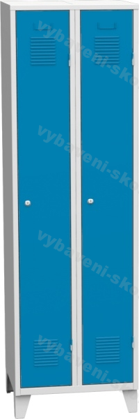 Svařovaná ocelová šatní skříň s 2 samostatnými úložnými částmi. Na nohách, uzamykatelná, kvalitní konstrukce. 60x185x50cm (Š x V x H).