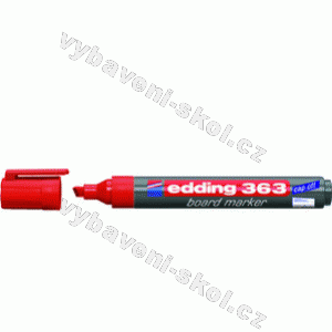 Plnitelným popisovačem Edding 363 červené barvy lze psát na téměř všechny povrchy, jako je email, sklo, melamin a jiné, je vhodný pro psaní a značení na bílé tabule. Fix má seříznutý hrot o průměru 1 - 5 mm. Snadno se stírá za sucha, je dobře viditelný a čitelný. Popisovač obsahuje systém Cap-off, díky kterému lze ponechat popisovač otevřený po určitou dobu, aniž by vyschl. Fix je rychleschnoucí a odolný vůči světlu, bez přídavku butylacetátu, inkoust slabého zápachu. Fix je znovu plnitelný, náhradní náplň je v nabídce (BTK 25). V odkazu stažení souborů naleznete návod k plnění popisovače náhradním inkoustem.