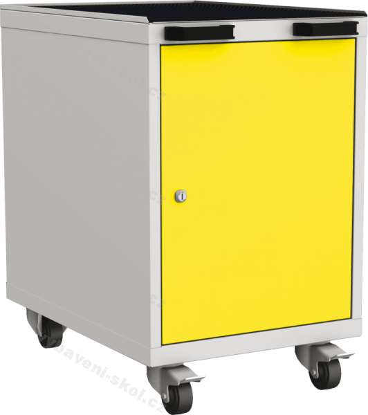 Pojízdný kontejner DPP ke svařovanému stolu, 1 dveře, 2 police, rámeček s rýhovanou gumou, rozměry 78 x 50 x70 cm (V x Š x H).