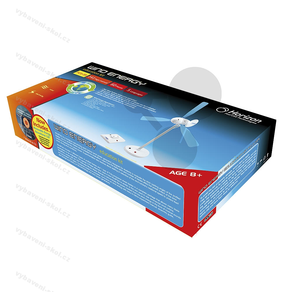 Složení: větrná turbína na stožáru s 3 modely různě profilovaných listů rotoru (vždy 6 ks), s možností montáže ve 3 polohách od 0° do 55°, připojovací box pro měření spotřeby, s německým návodem k montáži.
