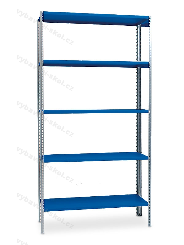 Univerzální šroubovaný regál pro dílny, archivy a sklady. Vyrobeno z ocelového plechu tl. 1 mm, pozink 1,5 mm. Povrchová úprava práškovou vypalovací barvou RAL 7035 (šedá), RAL 5005 (modrá) nebo RAL 9005 (černá) nebo pozinková úprava. 5 polic - přestavitelné v rastru 45 mm. Nosnost polic 100 kg, celková nosnost regálu 500 kg. 1000x400x2000 mm. Dodáváno demontované.