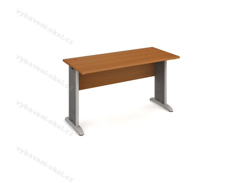 Pracovní stůl Cross CE 1400 se vyznačuje vysokou odolností a praktickou využitelností. Pracovní deska o síle 25 mm, obdélníkového tvaru, opatřena ochrannou hranou ABS o síle 2 mm, vyrobena z laminované dřevotřísky. Na pracovní desce je umístěna praktická průchodka pro kabeláž, která kabely svede pod pracovní desku, kde si s nimi poradí chytře zkonstruované plastové držáky. Podnož stolu je tvořena kovovou nohou a plastovým krytem, který slouží pro svod kabelů až k podlaze. Kabely jsou tak dokonale skryty. Možnost výběru designu kovové nohy a barevného provedení. Plastový kryt je v barvě antracitu. Nohy jsou osazeny výškově stavitelnou rektifikací, která umožňuje dorovnání případných nerovností podlah až o 15 mm. Nohy propojuje 18 mm silná laminovaná dřevotřísková deska, která zajišťuje stabilitu stolu. Jednoduchý spojovací systém umožňuje kombinovat stůl s jinými nábytkovými prvky. Spojovací systém včetně přehledného návodu jsou součástí každého prvku. Ze vzorníku je možné vybrat barevný dekor dřeva.