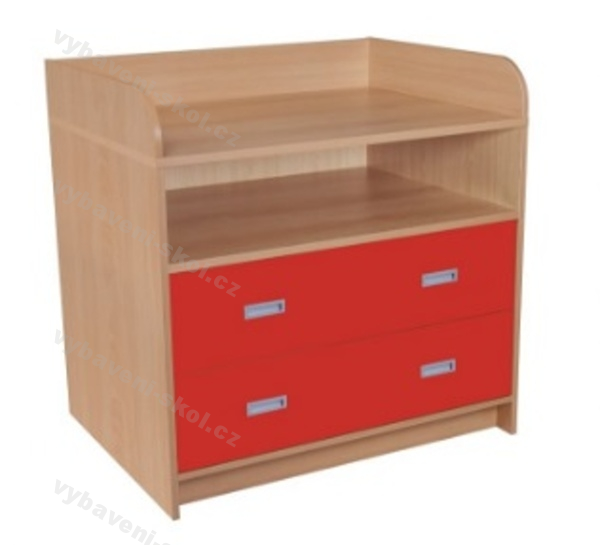 Praktická přebalovací skříňka se hodí do všech prostor, kde se pohybují nejmenší děti pro zajištění jejich komfortu. Korpus skříňky je vyroben z laminované dřevotřísky o síle 18 mm v dezénech buk, javor, bříza a bílá, namáhané plochy korpusu a zásuvek chrání 2 mm ABS hrana. Zásuvky skříňky jsou vyráběné z laminované dřevotřísky o síle 18 mm a nabízíme je v několika barevných variantách z naší nabídky. Praktické úchytky jsou zapuštěné, aby nedocházelo k úrazu. K přebalovací skříňce doporučujeme zakoupení přebalovací podložky k dispozici v naší nabídce. Výška okraje přebalovací plochy je 20 cm.