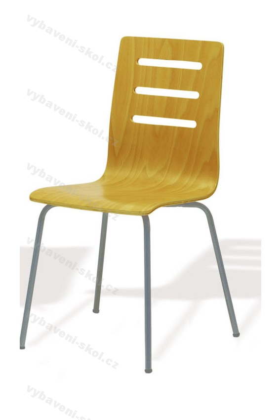 Dřevěná židle Tina, jednodílný překližkový korpus s výřezy, čtyřnohá kostra.