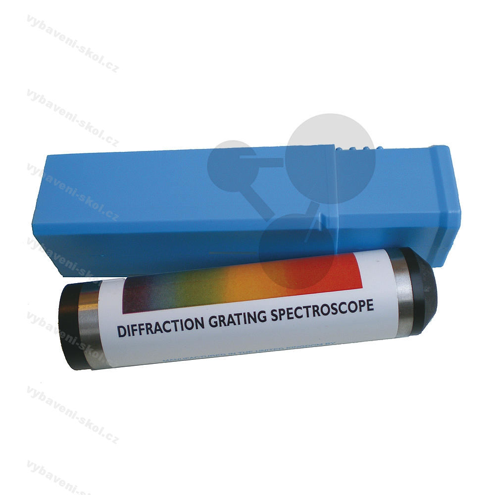 Mřížkový spektroskop s velkým okulárem pro jednoduché pozorování spektra obzvláště silného světla, s pevnou štěrbinou a systémem hranolů s mřížkou v kovovém pouzdře.