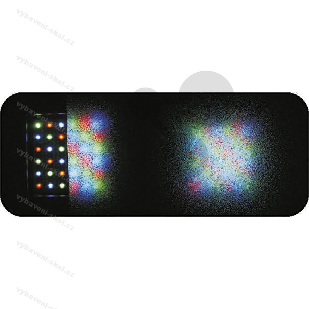 Základní pokusy na téma světlo a míšení barev. Sčítání, odečítání barev, rozptyl světla, absorpce a šíření světla. Barvy míchány pomocí LED matrice.