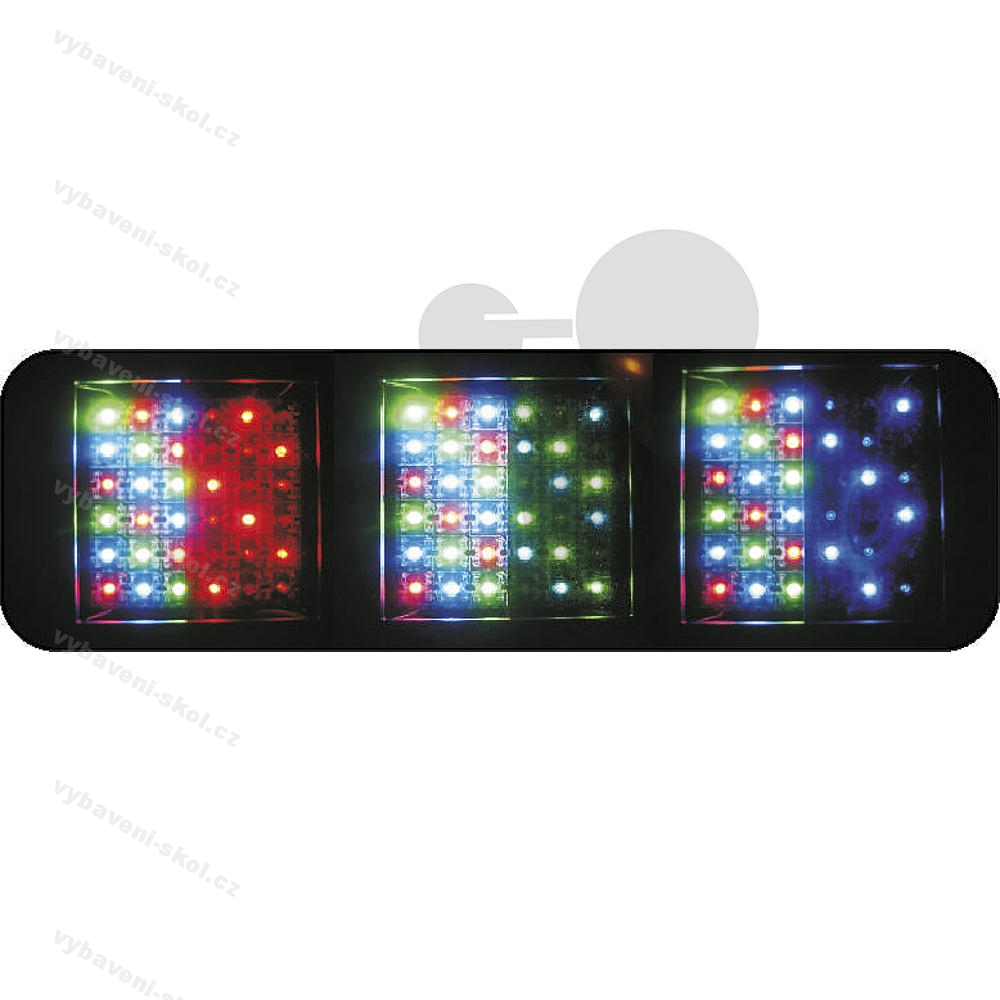 1 RGB displej, vždy s 12 LED pro každou barvu: 525 nm (zelená), 630 nm (červená), 470 nm (modrá),