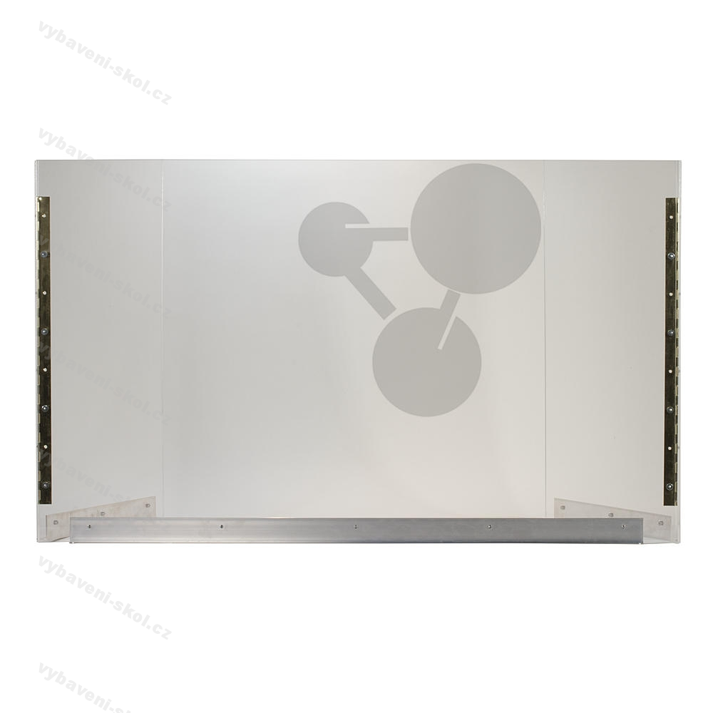 Z akrylových desek o tloušťce 5 mm, spodní strany tvoří profily z hliníku, které dodávají zástěně vysokou stabilitu. Čelní a postranní desky jsou propojeny kovovými závěsy. Zástěnu lze složit a přepravovat s maximální úsporou úložného prostoru.