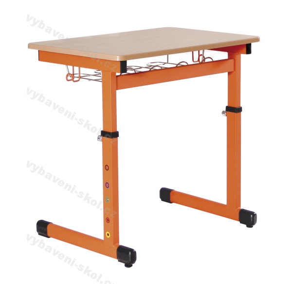 Školní lavice ROMEO FLEX jednolavice výškově stavitelná, jejíž pracovní plocha je vyrobena z materiálu laminovaného MDF se zvýšenou odolností proti oděru s litou polyuretanovou hranou v přírodním bukovém dezénu, má všechny hrany oblé. Kovová konstrukce je tvořena z plochooválných profilů 50x30x2 mm a jeklu 45x25x2 mm. Povrch upraven fosfátováním (ochrana povrchu před korozí) je následně ošetřen také práškovou vypalovanou barvou (komaxit). Po stranách lavice se nacházejí kovové háčky. Lavici lze také doplnit o kovové síto (odkládací prostor). Ochrana proti poškození je zajištěna nejodolnější hranou PUR. V nabídce jsou ale také hrany MDF a ABS. ROMEO FLEX jednolavice výškově stavitelná je opatřena plasty s rektifikačními šrouby s možností vyrovnání podlahy.