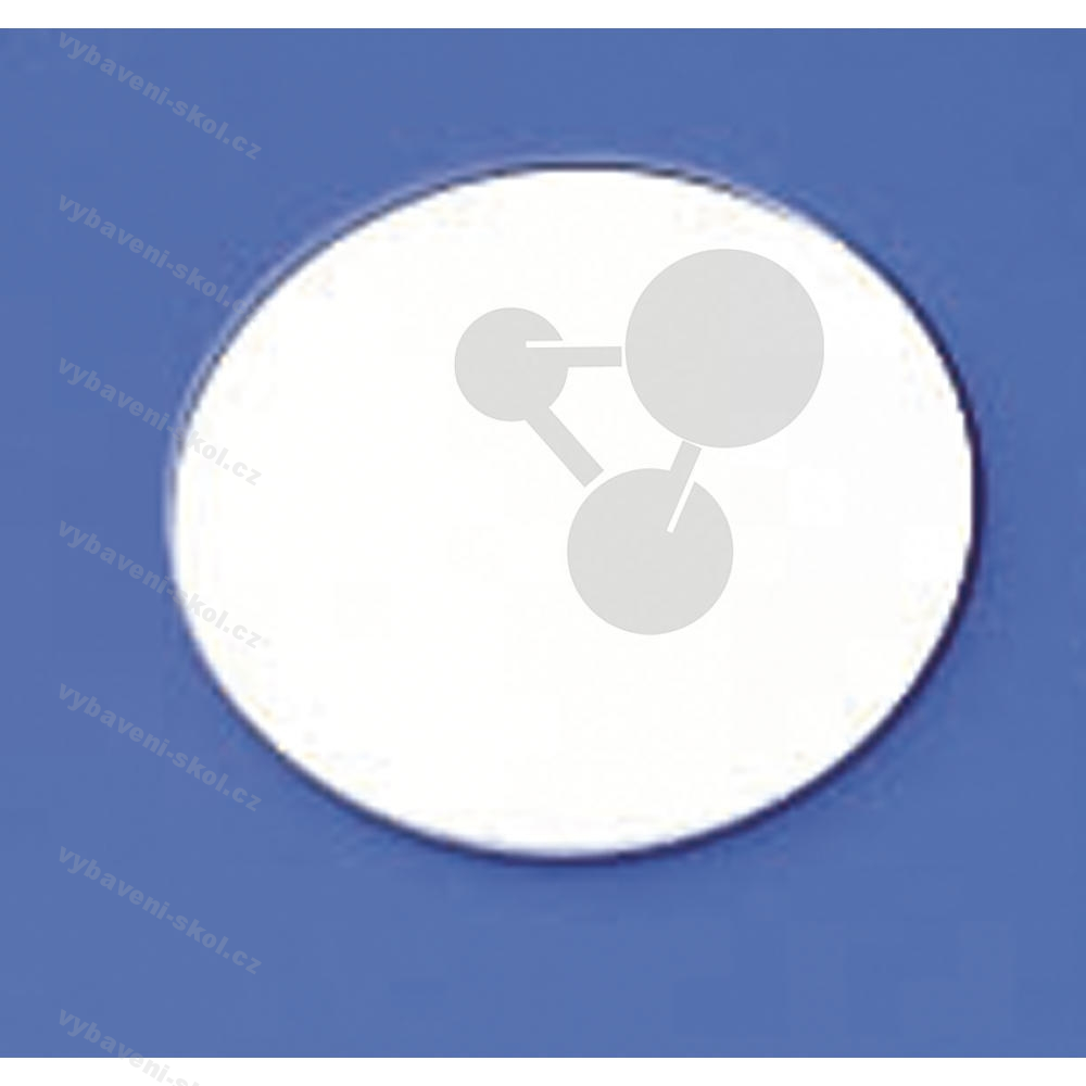 Lesklá kovová rovinná plocha odrážející světelné paprsky. Průměr 40 mm. Součást sady Skleněné čočky, zrcátko, clony v kufříku (CON1122081).