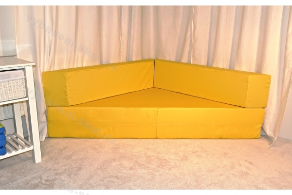 Rohová matrace je vyrobena ze směsové látky. Matrace se skládá ze dvou spojených trojúhelníků. Rozměr matrace: 140 x 140 x 15 cm. Rozměr opěry: 140 x 30 x 15 cm. Barevné provedení: modré, zelené, žluté a červené.