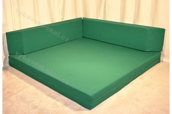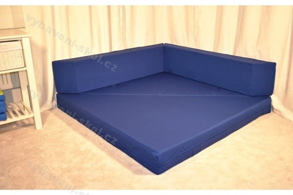 Matrace se skládá ze dvou spojených trojúhelníků. Rozměr matrace: 140 x 140 x 15 cm. Rozměr opěry: 140 x 30 x 15 cm.