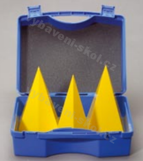 Čtyř-, pěti- a šesti- boký jehlan. Ruční výroba. Žlutý plast. Popisovatelný povrch. V plastovém kufříku.