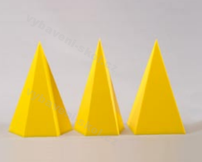 Čtyř-, pěti- a šesti- boký jehlan. Ruční výroba. Žlutý plast. Popisovatelný povrch.