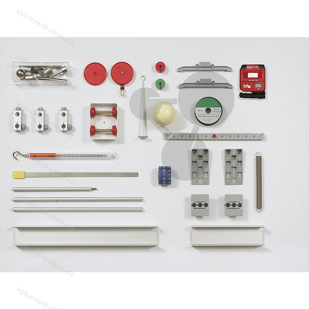 S materiály této sady můžete zkoumat při 16 pokusech různá působení sil, kladky, kladkostroj, páku, tření, setrvačnost a rovnoměrné a zrychlené pohyby.