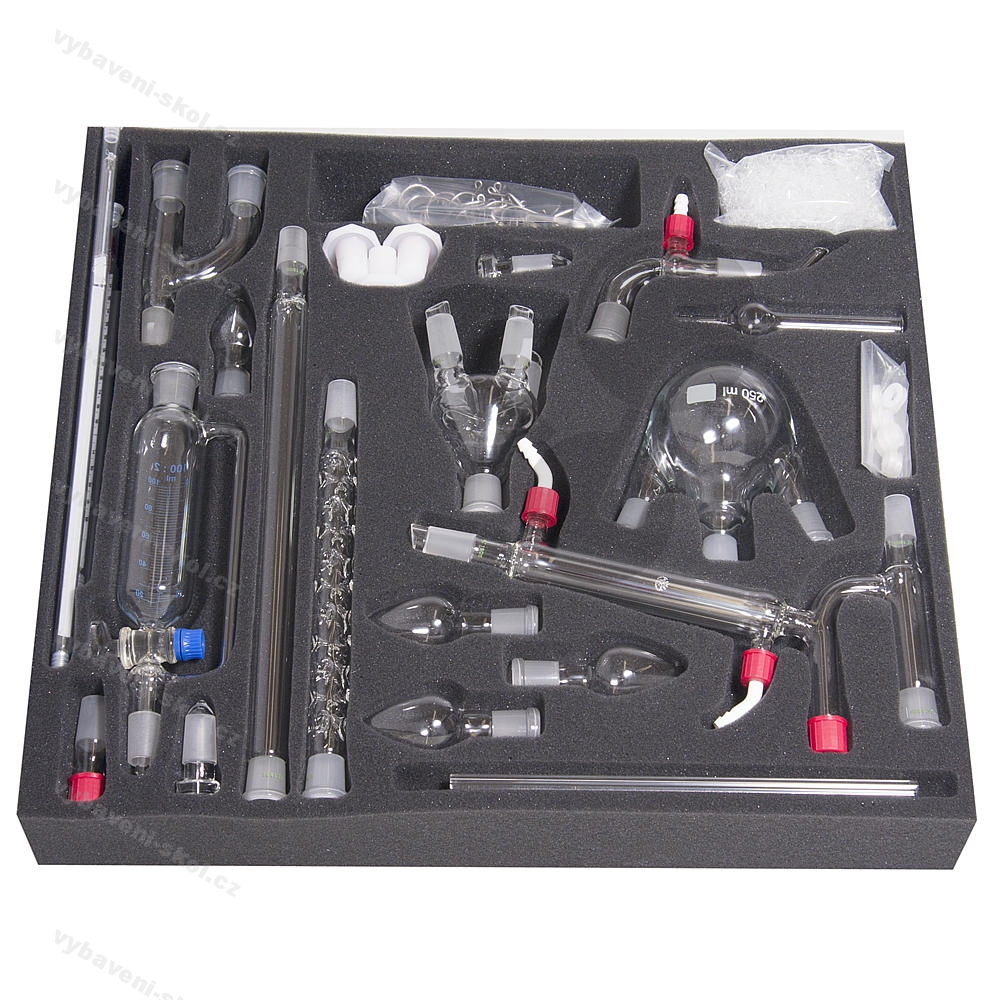 Tuto přístrojovou soupravu tvoří 89 částí, které umožňují sestavení modelů četných pokusů v anorganické a organické chemii.